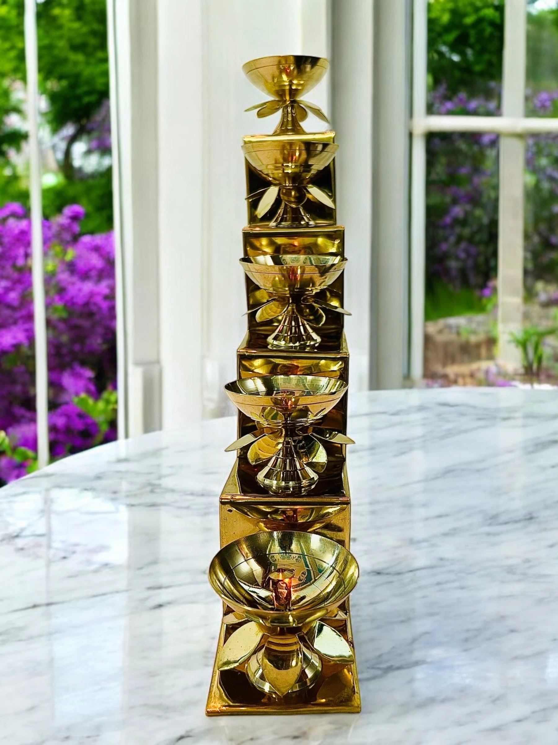5-step diya| Oil lamp| Pujo Diya| Brass Table Diya (Height: 10 inch)