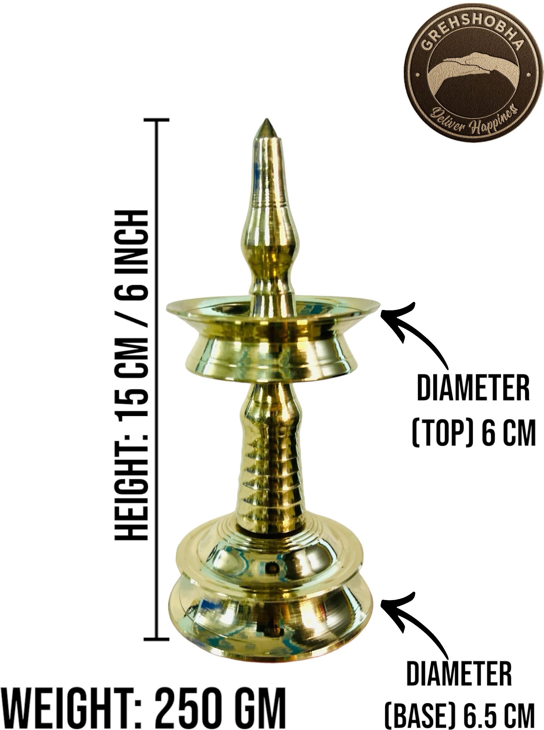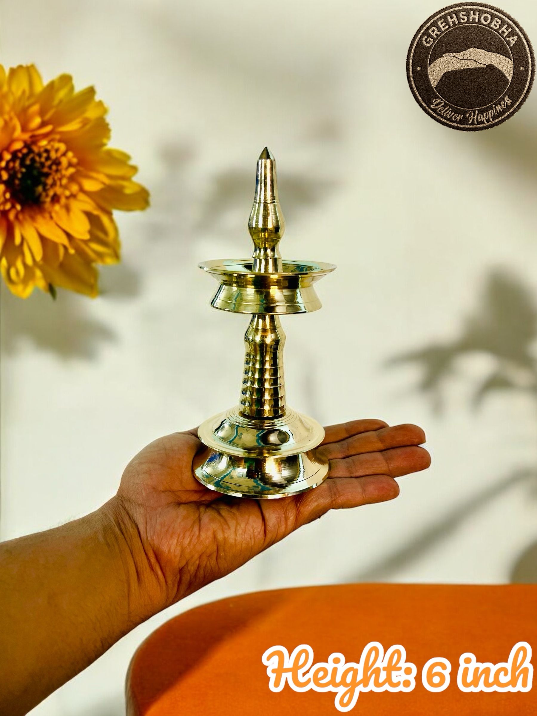 Brass Gold Toned Textured Kerala Fancy Nilavilakku | Kuthu Vilakku | Small Size Brass Table Diya (Height: 6 inch)