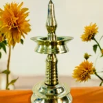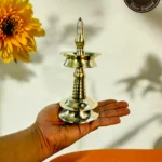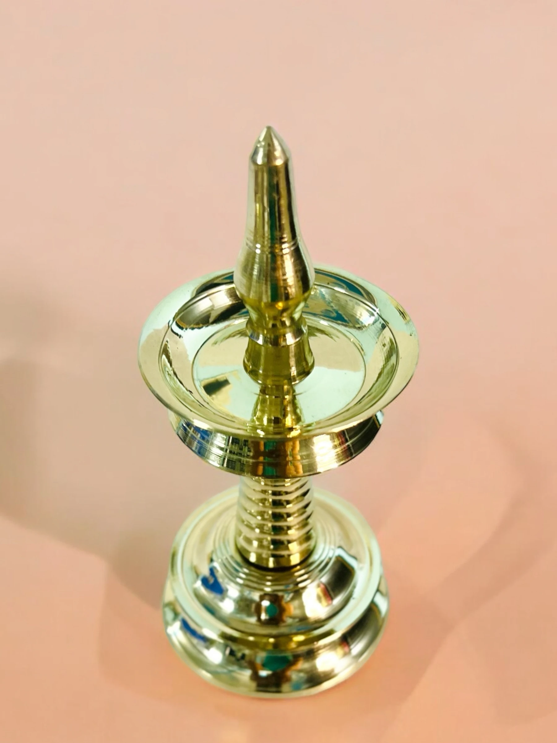 Brass Gold Toned Textured Kerala Fancy Nilavilakku | Kutthu Vilakku | Brass Table Diya