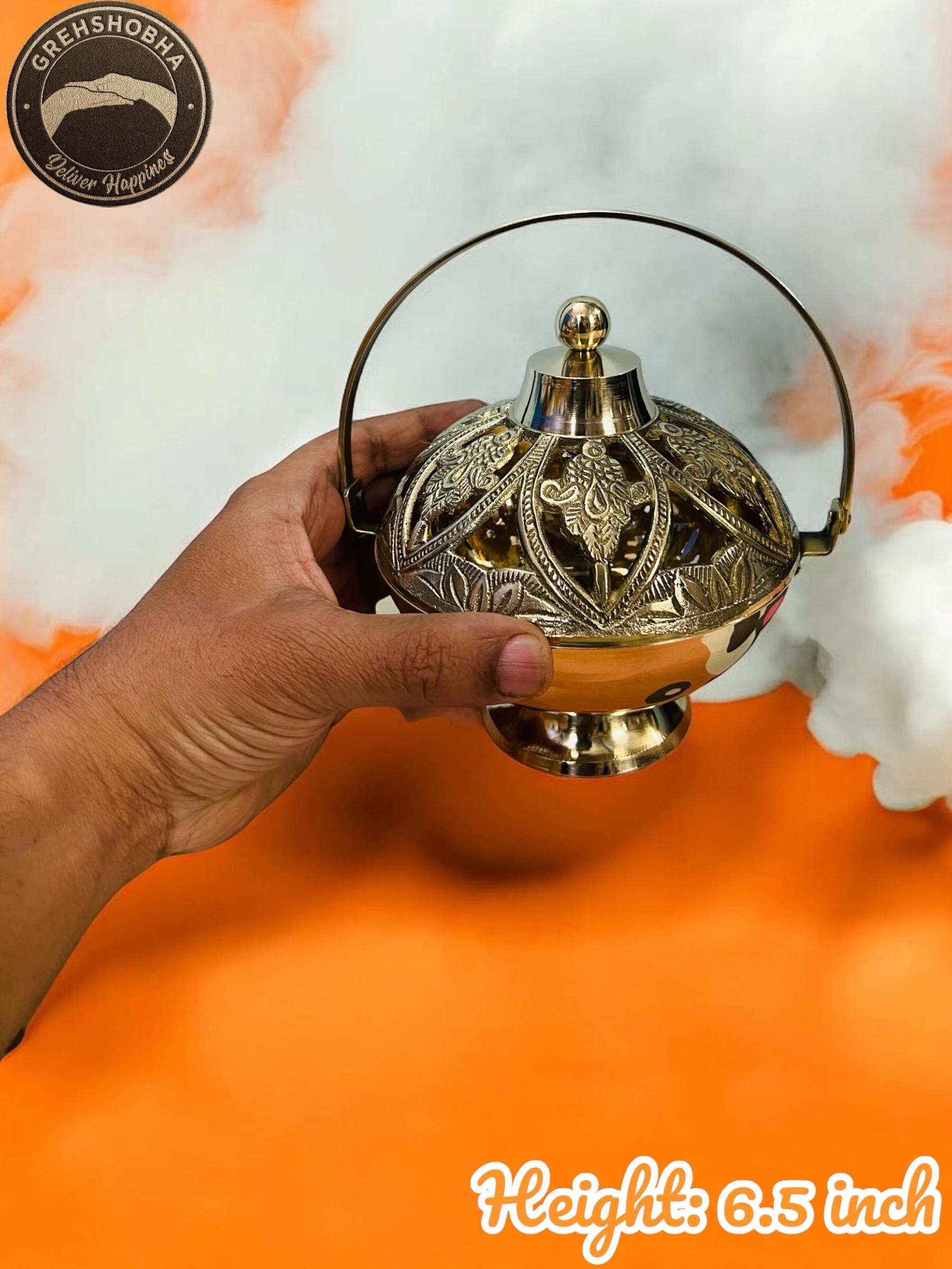 Brass Loban Dhoop Dani Holder, 6.5-Inch, 475 gm| Wall Hanging Brass Incense Holder (Gold)