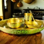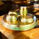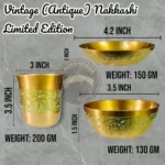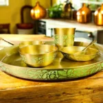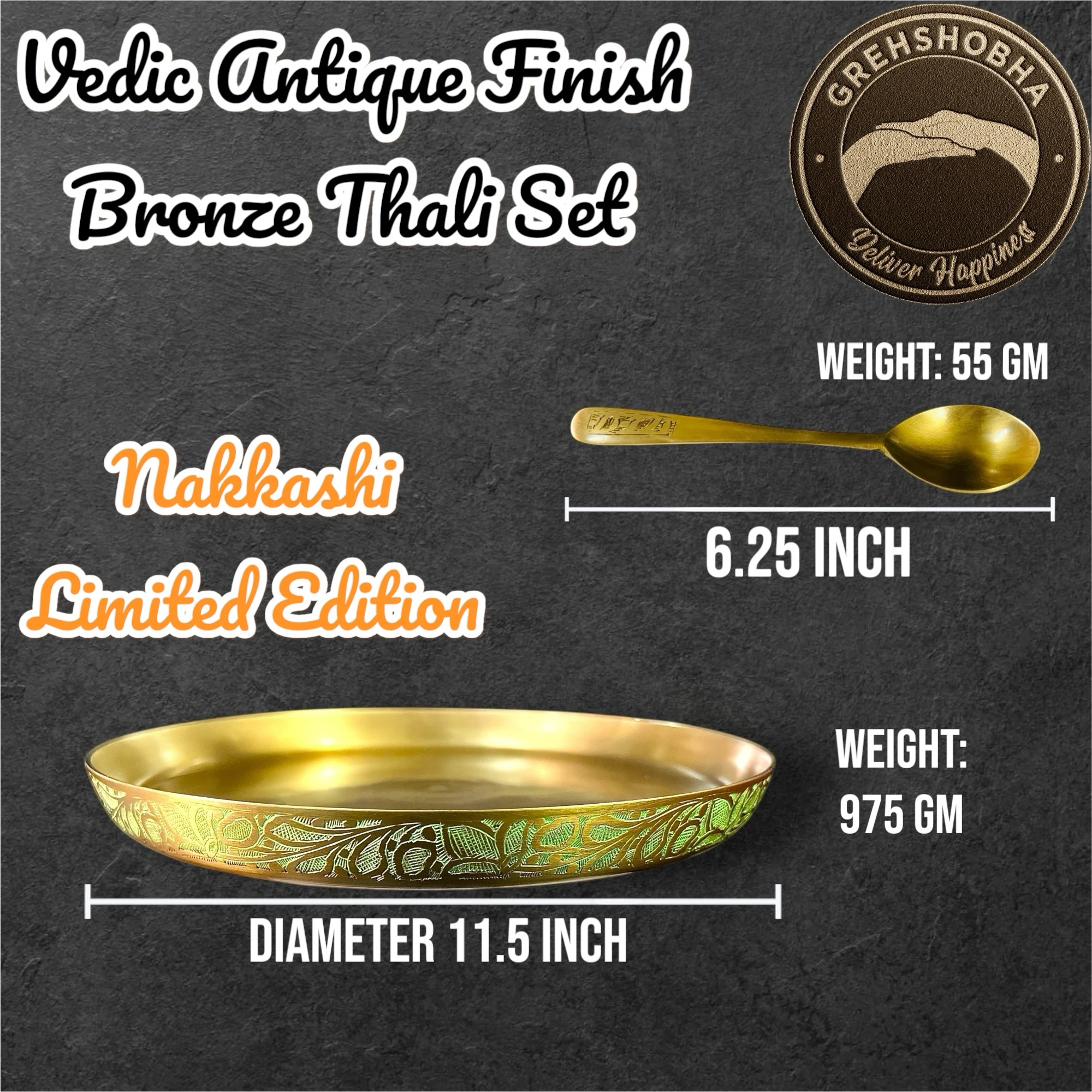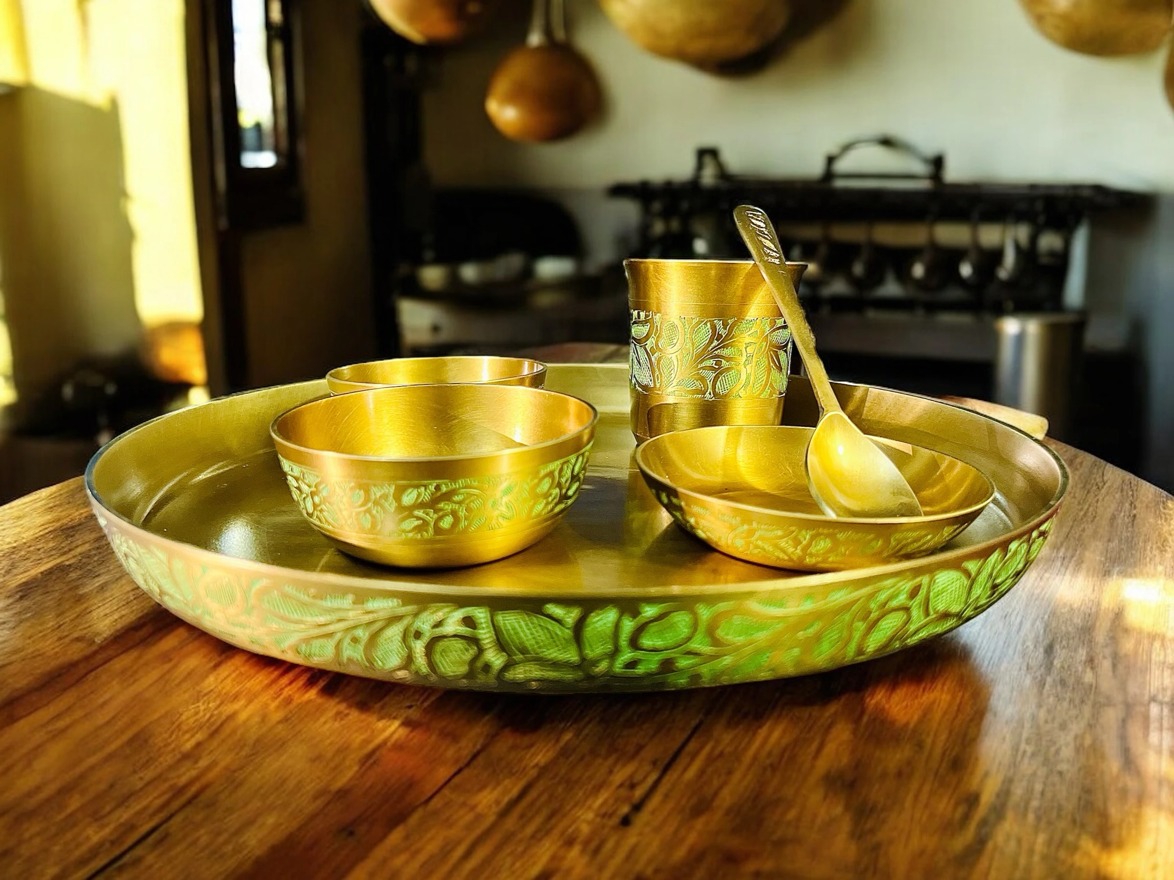 Bronze 6-Piece LEAD-FREE Kansa NAKKASHI Dinner Set | FOOD-SAFE CERTIFIED Vintage Finish Dinner Set (Gold, Microwave Safe)