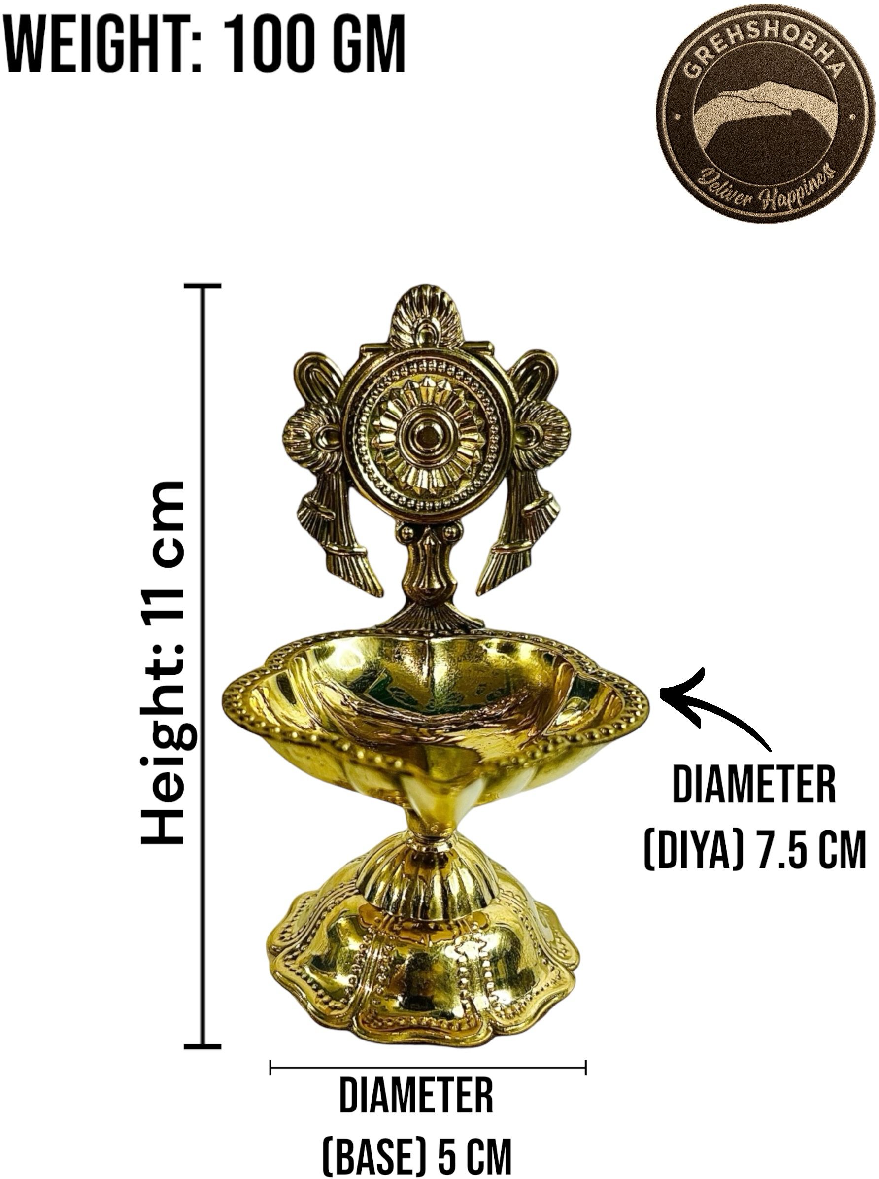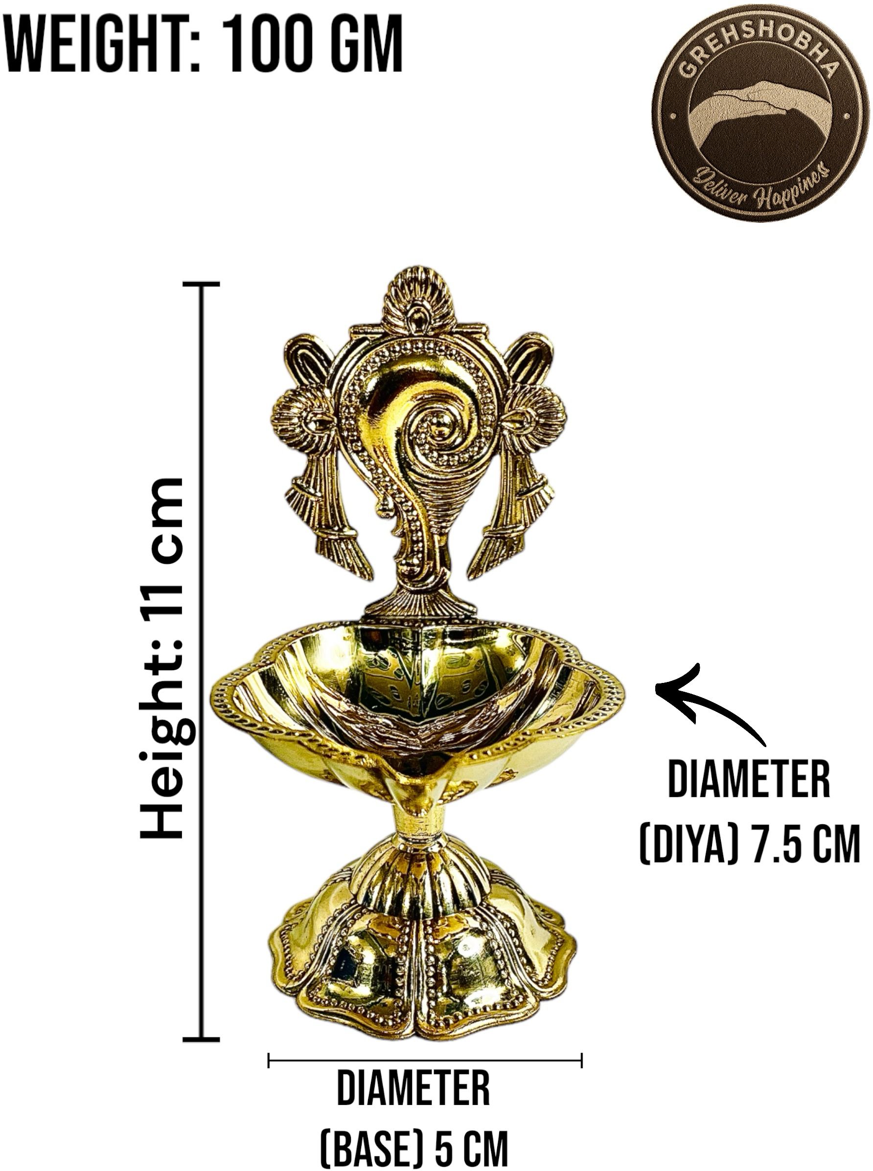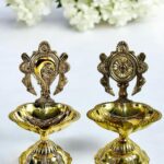 Be the first to review “Grehshobha Brass Shankh Chakra Aarti Diya | Shell Chakra Brass (Pack of 2) Table Diya Set”