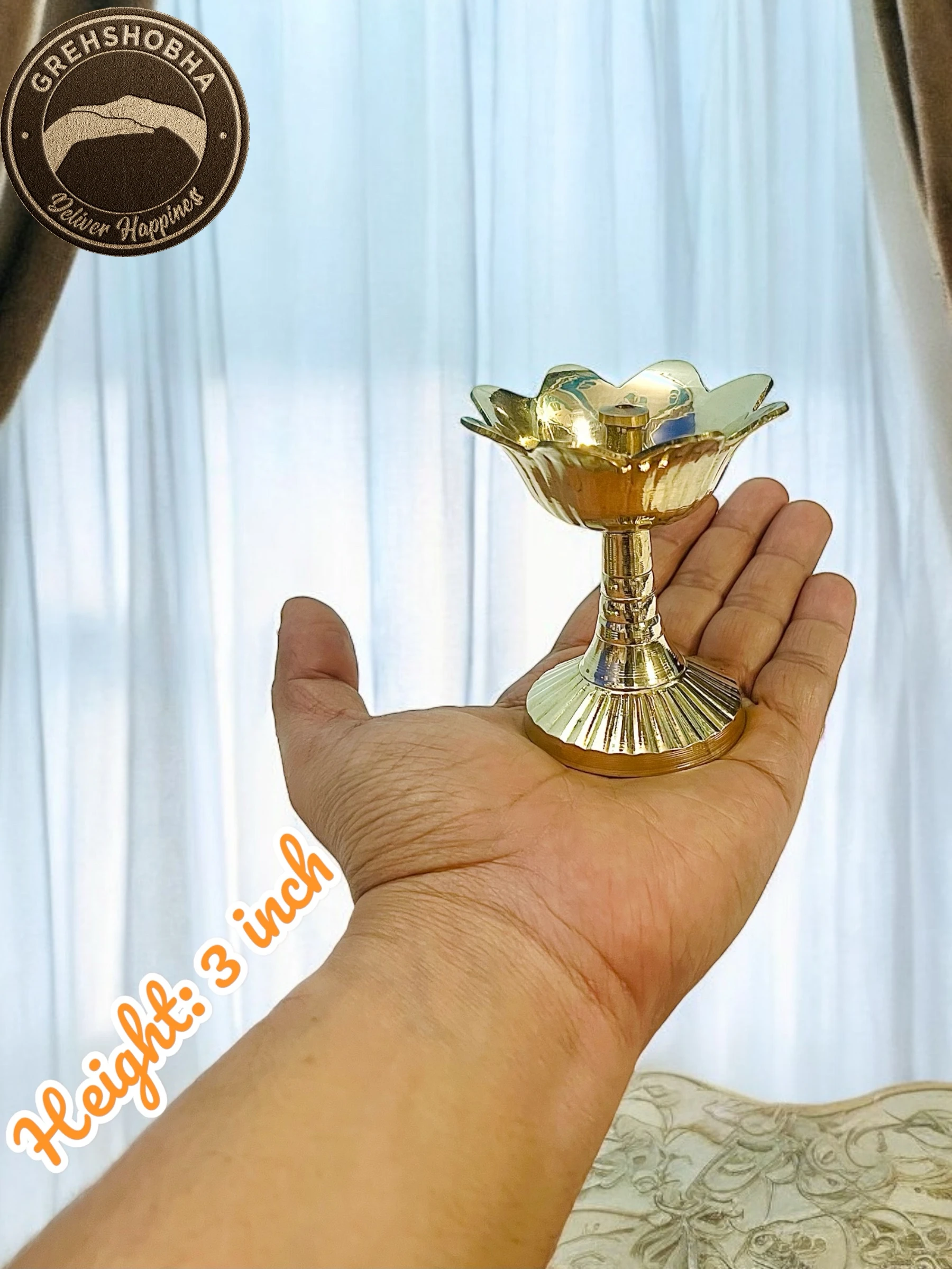 Kamal Akhand Jyoti Diya with Stand | Kundulu Deepam for Pooja Room | Home Decor Brass (Pack of 2) Table Diya Set (Height: 3 inch)