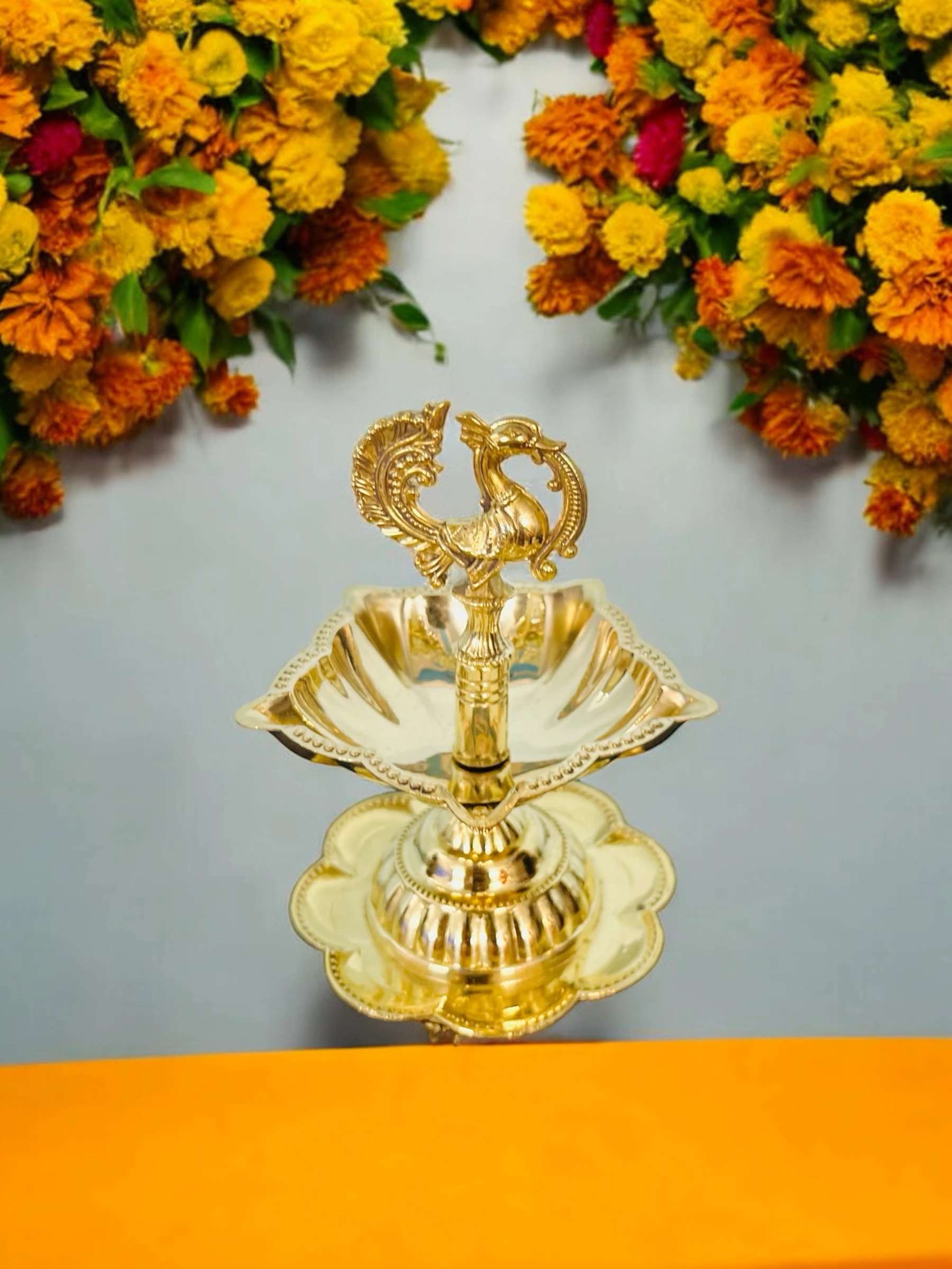 Redefine the radiance of your aarti with the powerful dye cast peacock diya in pure brass that not just looks exquisite but also enhance the spiritual experience of your festival.
