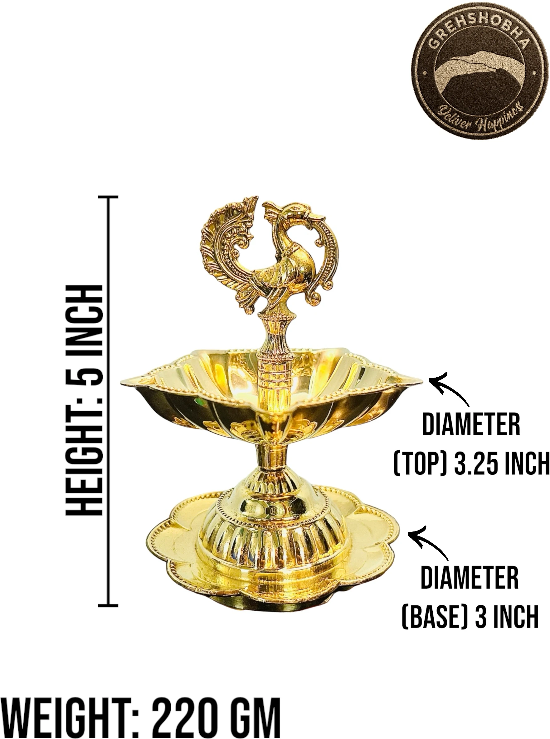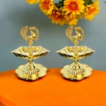 Peacock diya (set of 2) pure brass dye cast deepak for pooja, hawan, festival| home and temple decor
